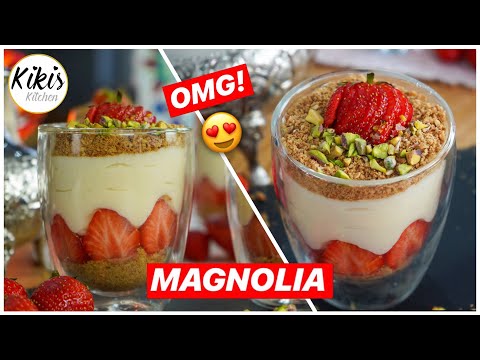 Magnolia Dessert mit Erdbeeren - schnelles Rezept / Erdbeertraum im Glas / Nachtisch - Magnolia Rezept Original - Hallo ihr Lieben, in den Flitterwochen kamen wir ins schwärmen: das Magnolia-Dessert hat uns einfach verzaubert Das köstliche Dessert besteht Nüssen, ...