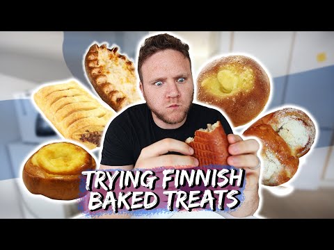 TRYING FINNISH BAKED TREATS | Taste Test Tuesday - Finnish Pastry - Quite ironic really, here I am trying some Finnish treats from the bakery and our bun in the oven has come out :D GET YO' MERCH! http://www.cavedad.fi Follow ...